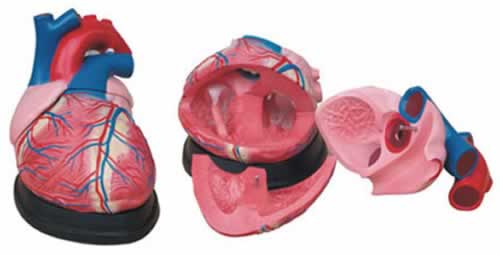 功能特点:该模型由心房、心室冠状剖面和右心耳、左心房等4个部件组成,并显示心房、心室以及二尖瓣、三尖瓣、主动脉瓣和肺动脉瓣等结构,有部位指示标志。
